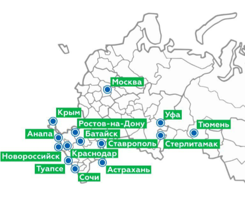 Сочи, Ставрополь, Краснодар, Уфа, Анапа, Волгоград, Севастополь, Астрахань, Ростов-на-Дону, Москва
